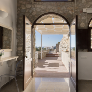 Η Σουίτα Executive με Jacuzzi επαναπροσδιορίζει τη χαλάρωση με τον εκλεπτυσμένο σχεδιασμό της και το ιδιωτικό της jacuzzi, με φόντο τη λαμπερή θάλασσα του Αιγαίου.