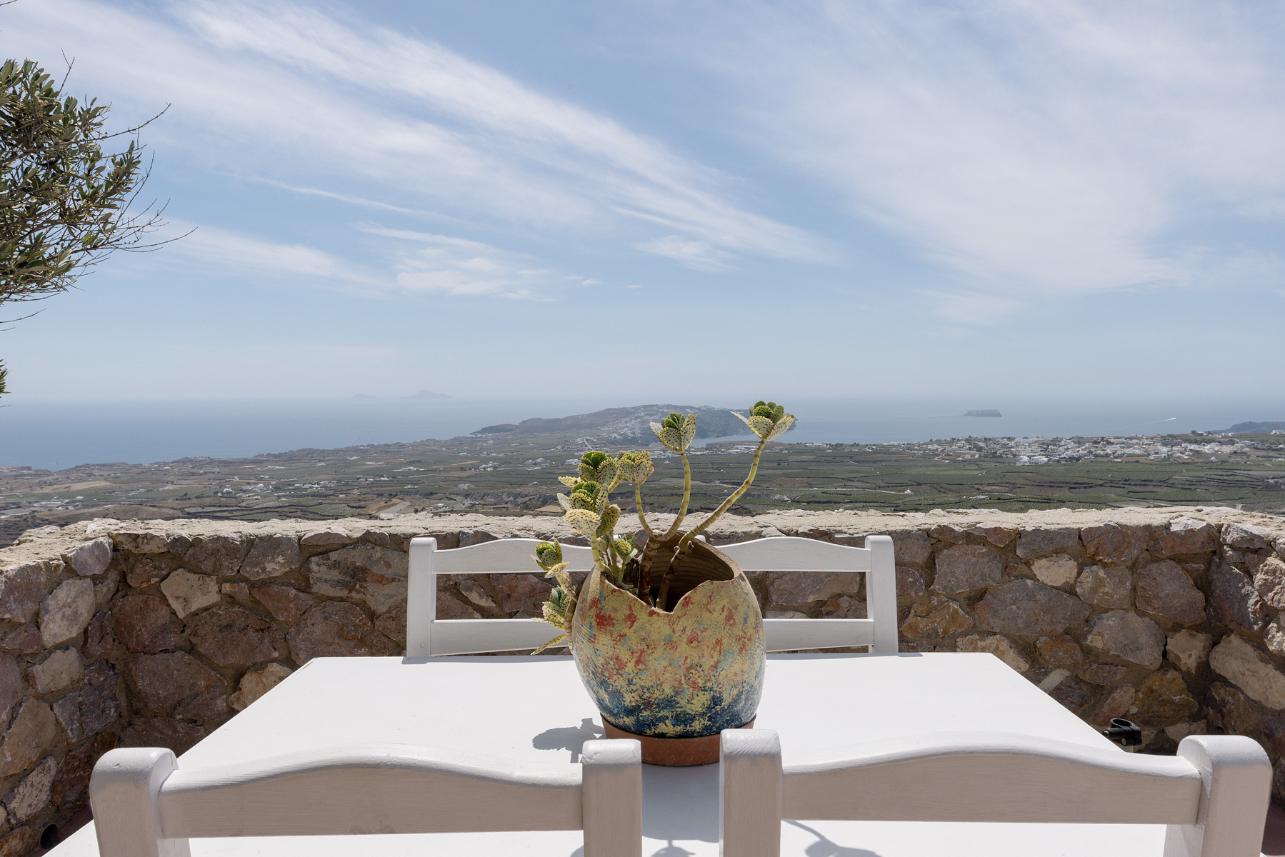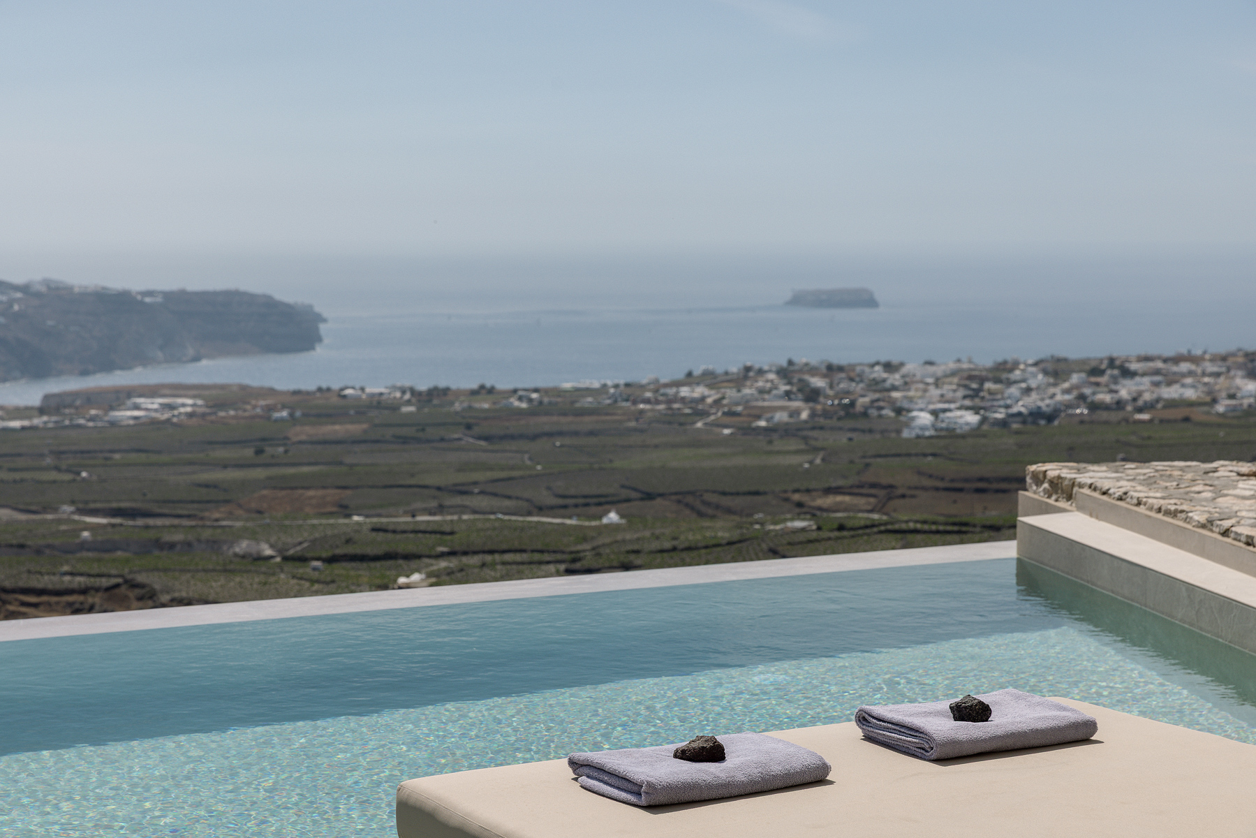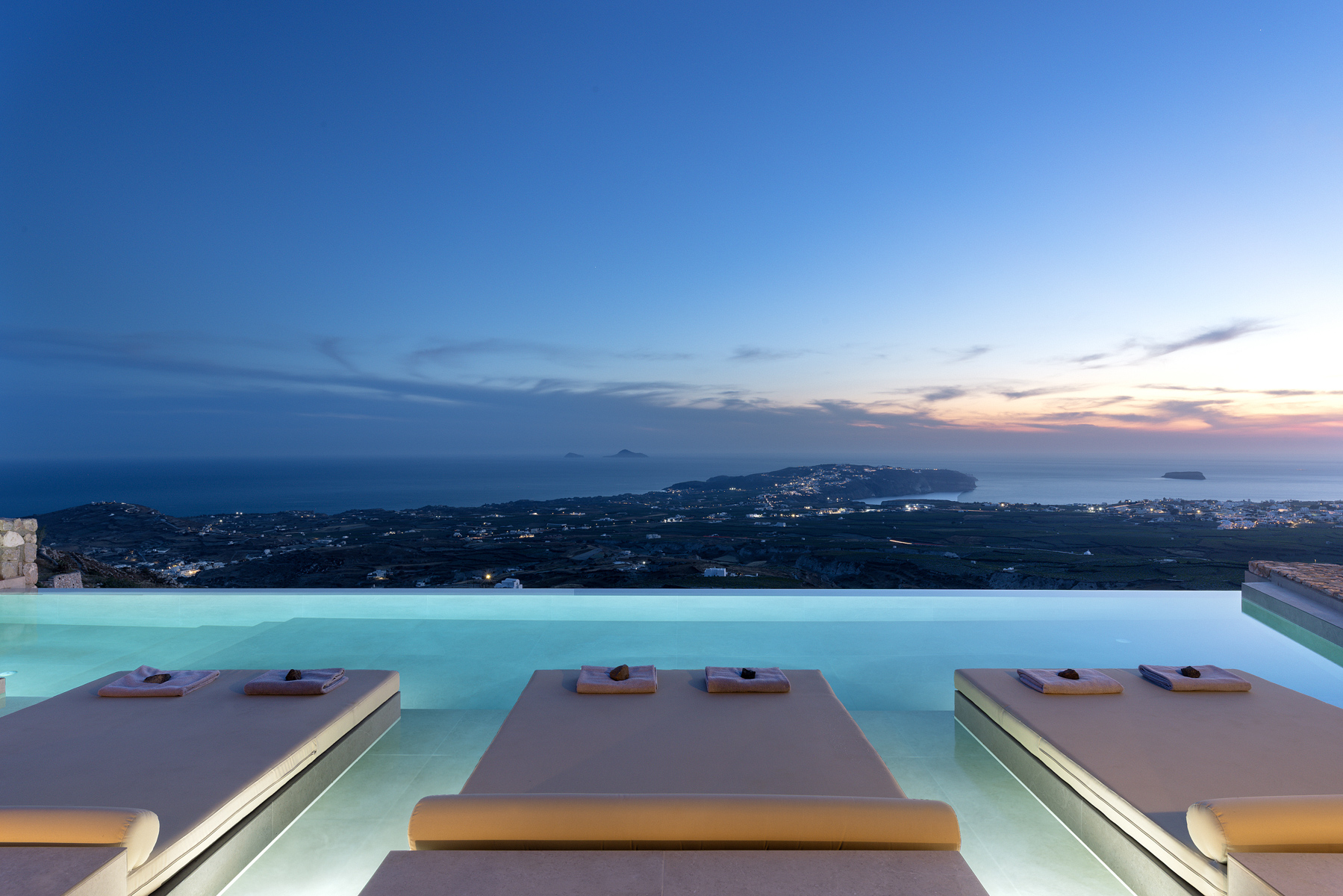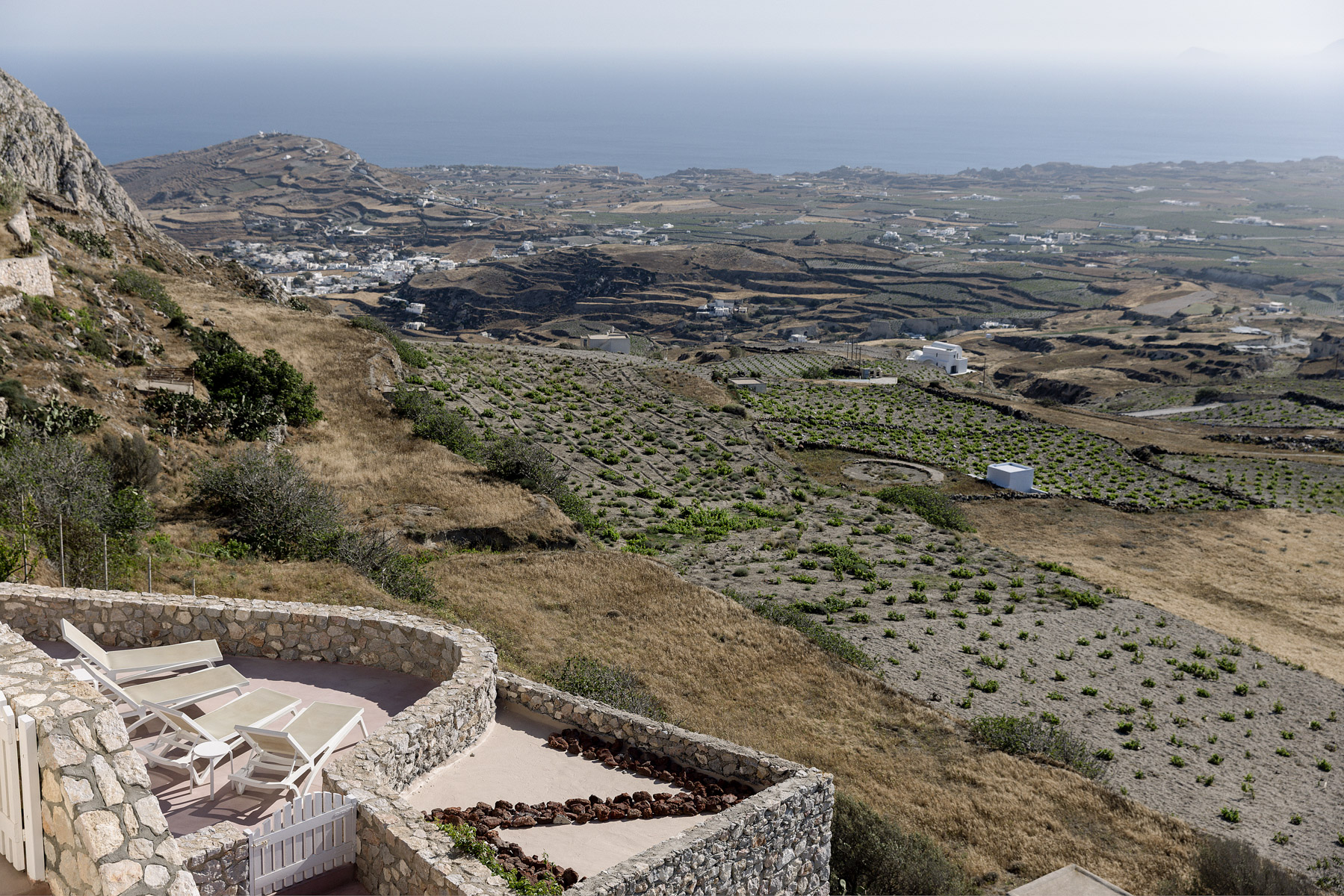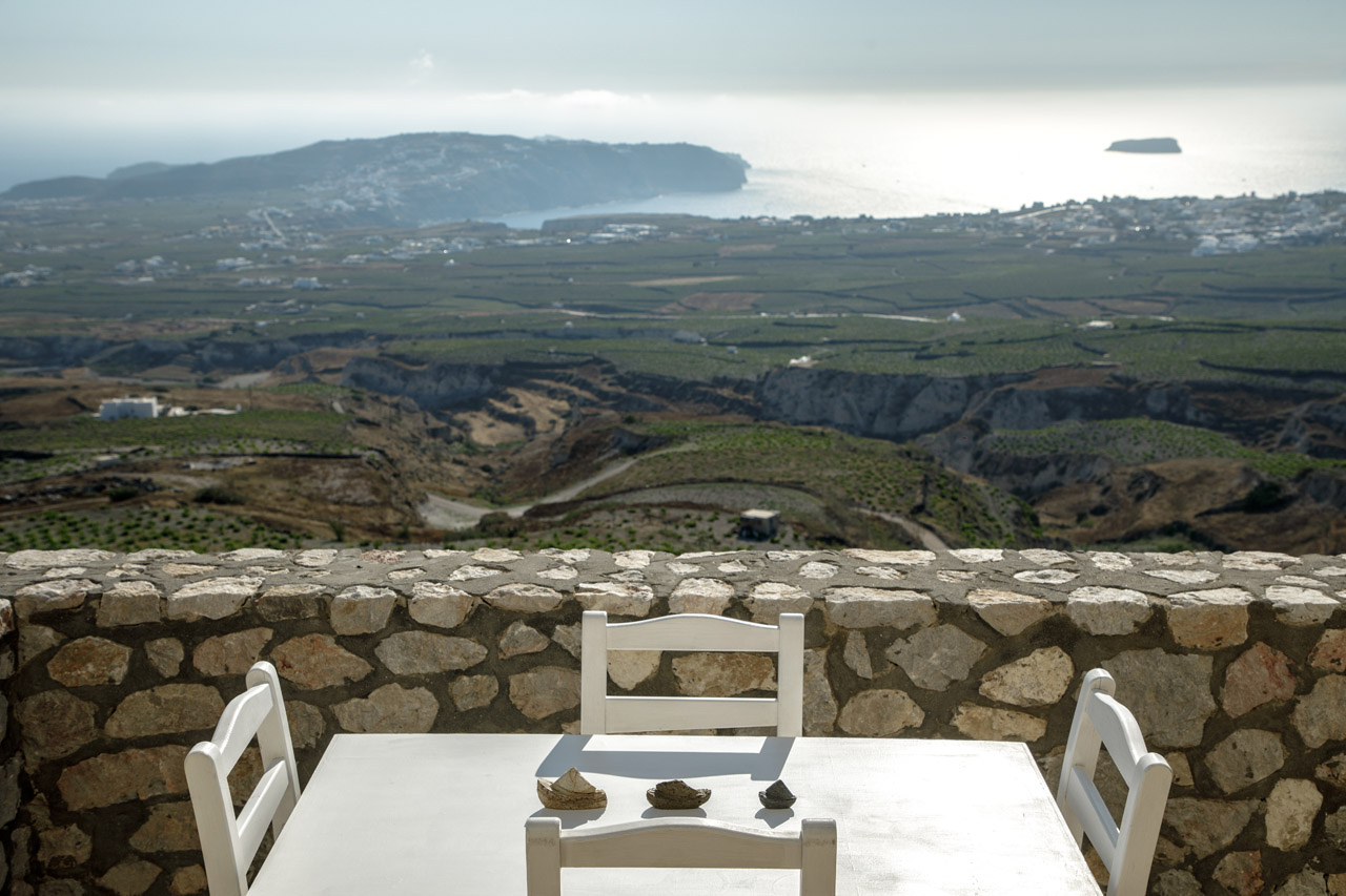 Η εξαιρετική, πανοραμική θέση του Zatrikion, επιτρέπει στο μάτι να αγναντέψει το απέραντο γαλάζιο που αποκαλύπτεται στον ορίζοντα σαν πίνακας ζωγραφικής. Από τις μεγάλες βεράντες και τα παράθυρα η θέα στους αμπελώνες και στο Αιγαίο είναι απεριόριστη και γύρω από την πισίνα οι βραδιές είναι πραγματικά μαγικές
