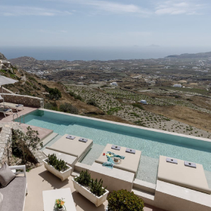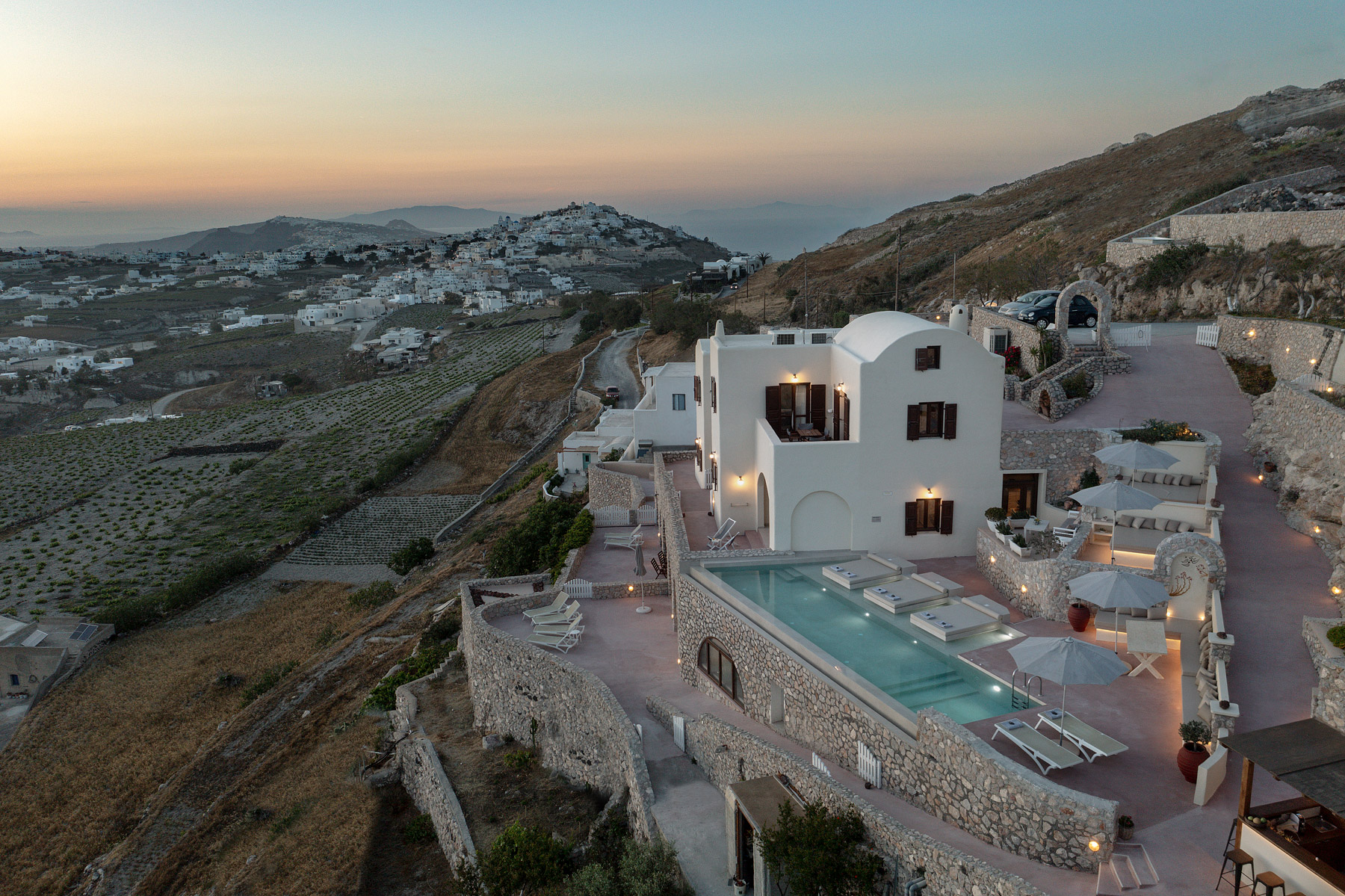 Βρίσκεται 10 χλμ. μακριά από τα Φηρά, είναι από τα πιο γραφικάσυγκροτήματα βιλών της Σαντορίνης και αποτελεί εξαιρετική επιλογή ιδιωτικότητας και προσβασιμότητας.
